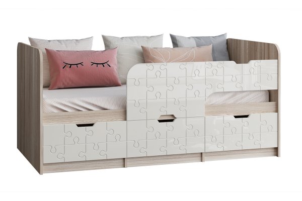 Этот вариант на вид напоминает маленький диван, не оборудованный подлокотниками. Его длину можно регулировать, но в основном он изначально является полноценным спальным местом. Конструкция такого вида ставится в углу или возле стены из-за мягкого изголовья и тоже может требовать дополнительного пространства в отдельных случаях, в частности, если активный рост ребёнка потребует больших габаритов кушетки.