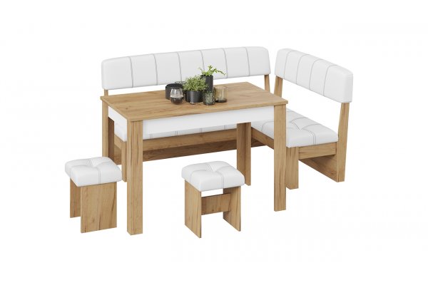 - Расположение буквой Г. Крайне удобное расположение мебели, шкафов и бытовой техники в углу. Также подходит для малогабаритных помещений, что позволит не только готовить вкусные блюда, но и удобно разместить стол и стулья в противоположенном углу, для трапез.
