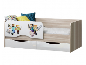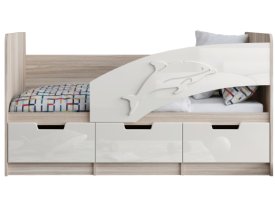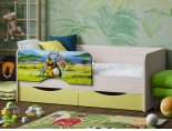 Кровать детская "Юниор-12" 0,8*1,6 м - Ясень шимо светлый / Золотой металлик, ф/п "Мадагаскар"