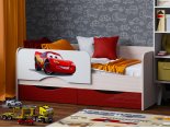 Кровать детская "Юниор-12" 0,8*1,6 м - Ясень шимо светлый / Красный металлик, ф/п "Тачки"