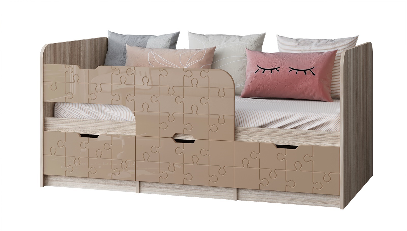 Кровать детская "Юниор-9" 0,8*1,8 м - Латте глянец / Ясень шимо светлый (левый)