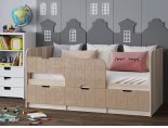 Кровать детская "Юниор-9" 0,8*1,8 м - Латте глянец / Ясень шимо светлый (правый)