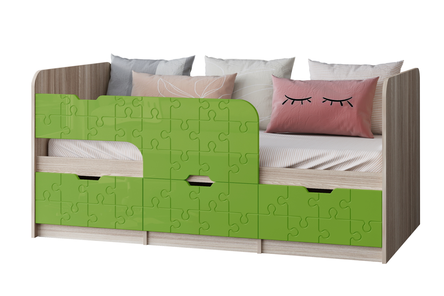 Кровать детская "Юниор-9" 0,8*1,8 м - Цитрус глянец / Ясень шимо светлый (левый)