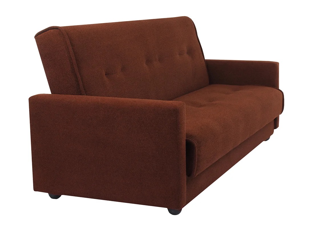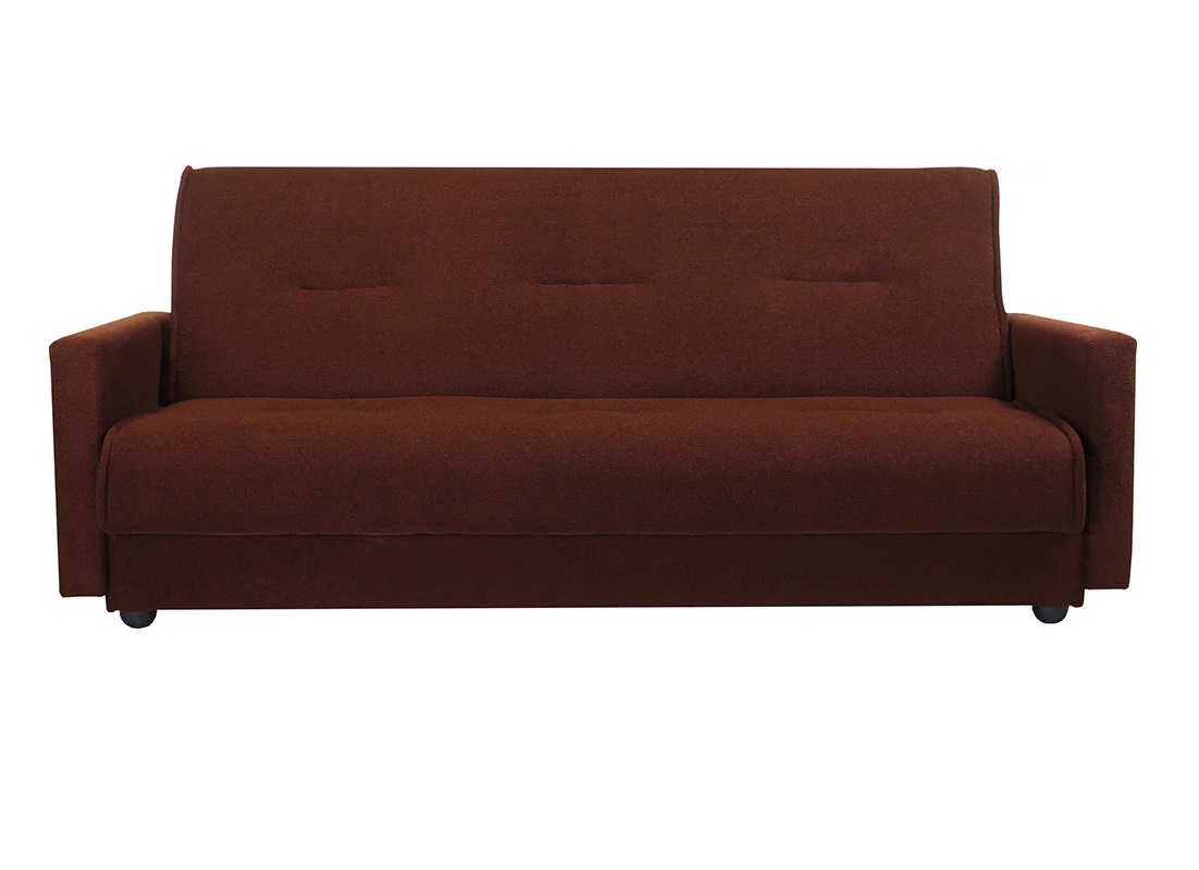 Наличие востребованного у покупателей механизма трансформации «книжка» дает возможность просто разложить диван, преобразовав его в полноценную кровать 1200x1880 мм. В сложенном виде, на 3 посадочных местах, прекрасно поместятся несколько человек.