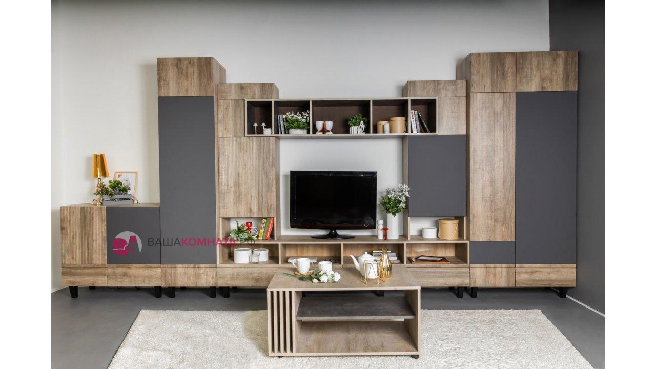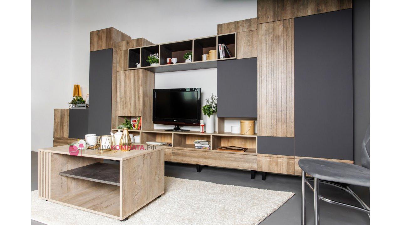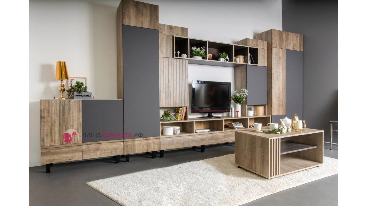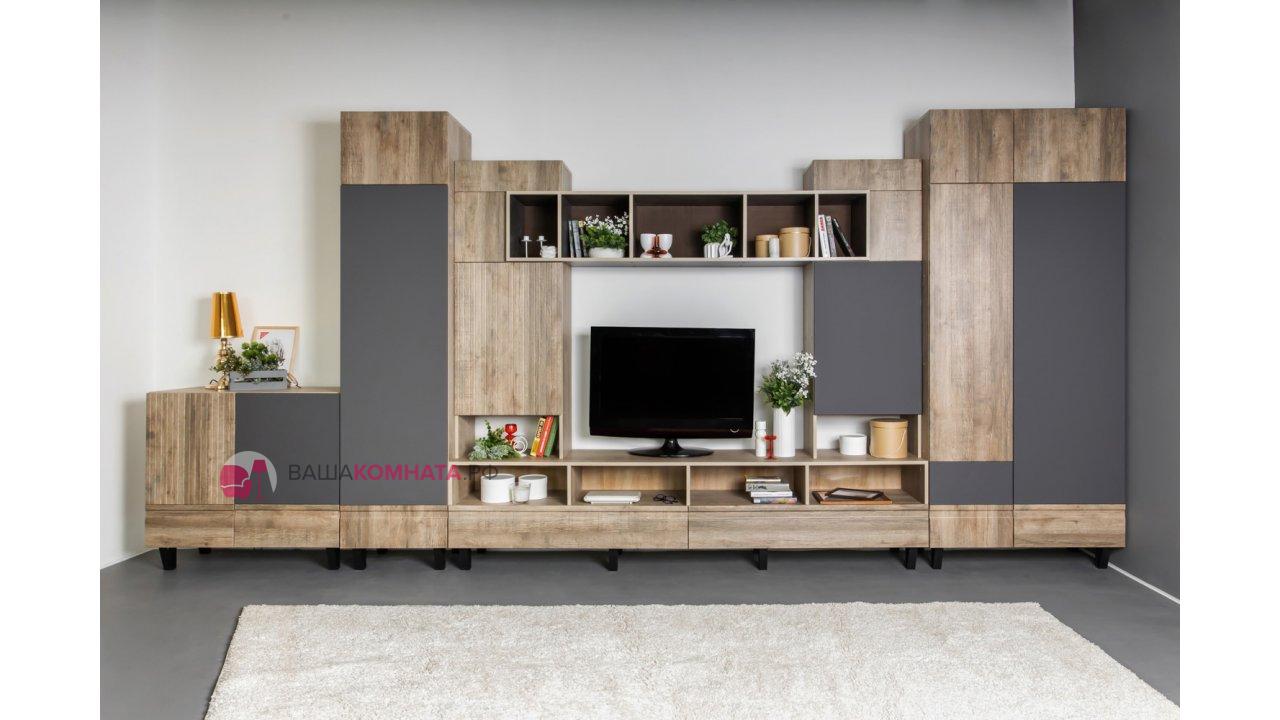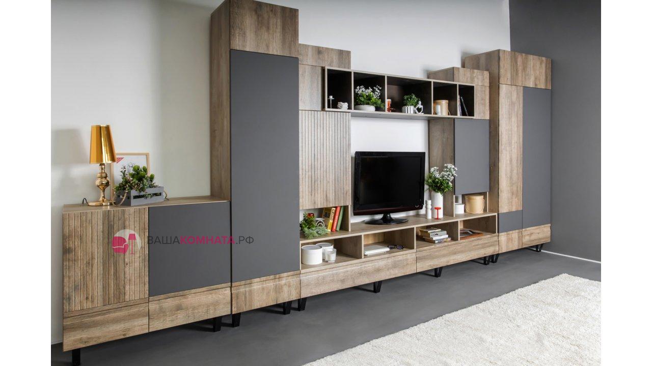 Модульная гостиная "Нота-28" - Дуб скандинавский бежевый+Графит / дуб эндгрейн+Ателье темный