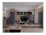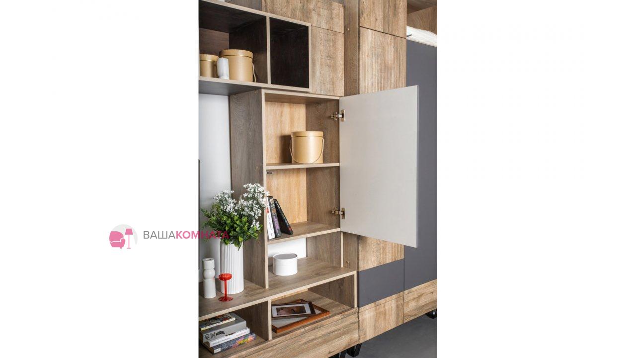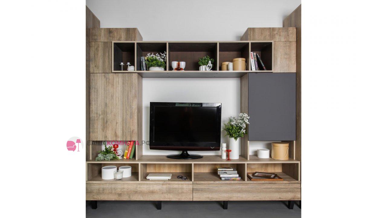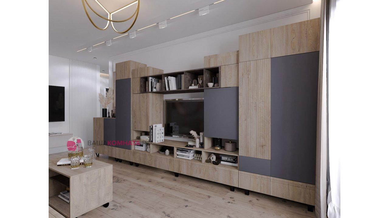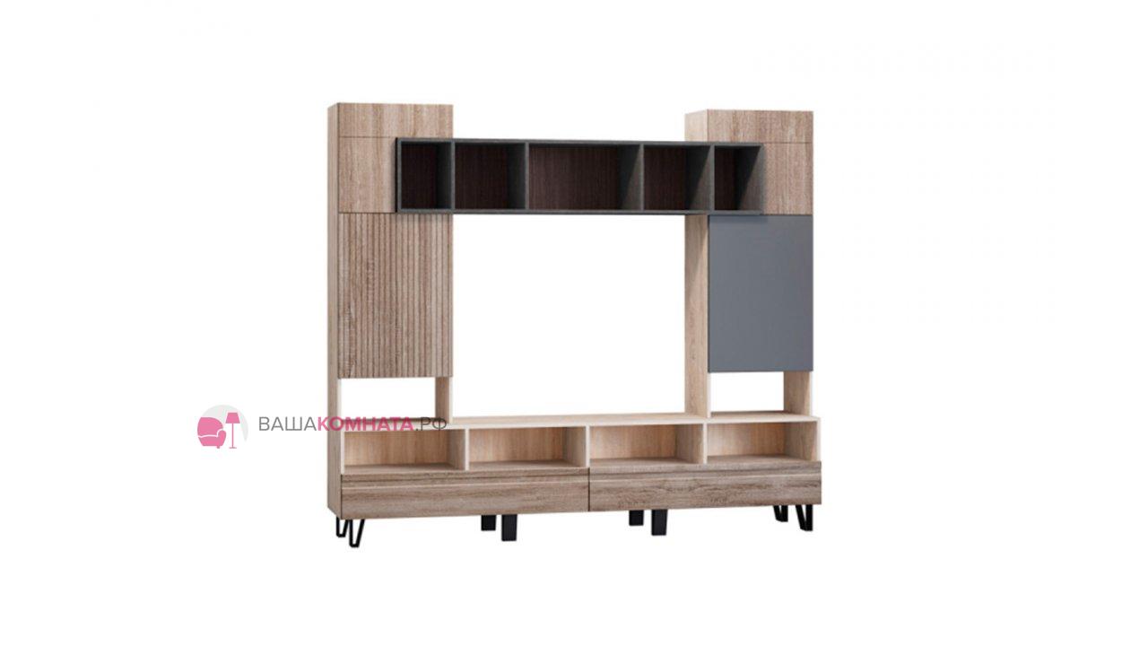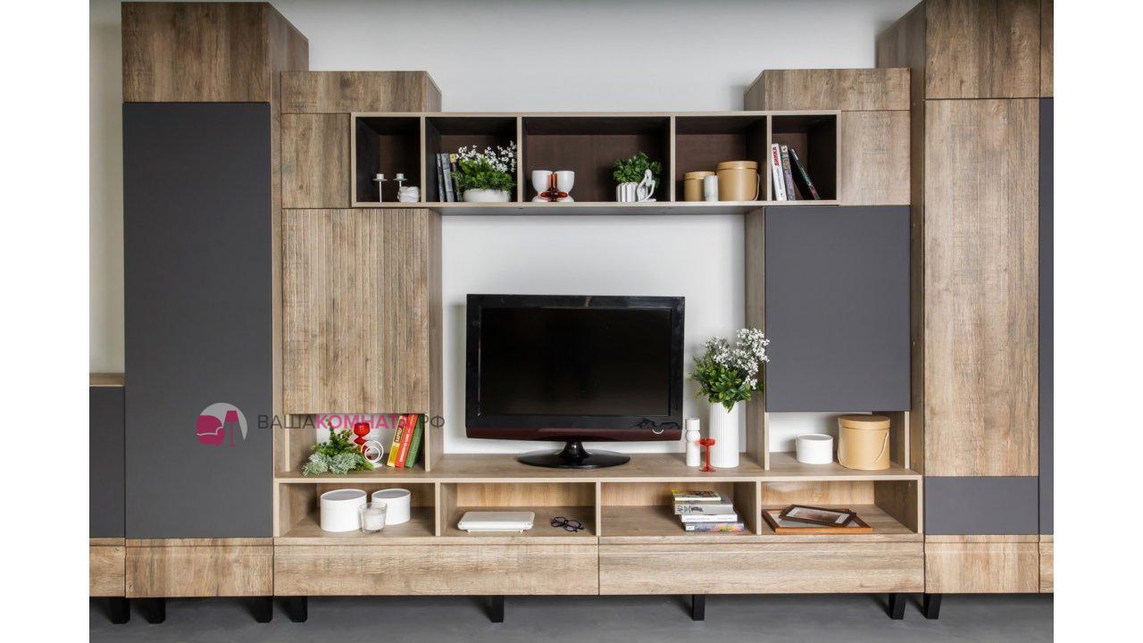 Модульная гостиная "Нота-28" - Дуб скандинавский бежевый+Графит / дуб эндгрейн+Ателье темный