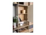 Открытые полочки в нижней в верхней части композиции.