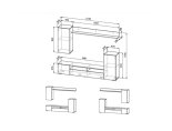 Комплект состоит из тумбы, навесного пенала и навесной полки. Габариты комплекта ШхВхГ 2130х1700х346 мм. В таком виде как на изображении размеры ниши под ТВ составляют 1244х1178 мм. Изделие можно собрать зеркально.