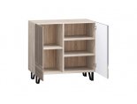 Тумба имеет две глухих двери, разделена вертикальной перегородкой на два отсека.