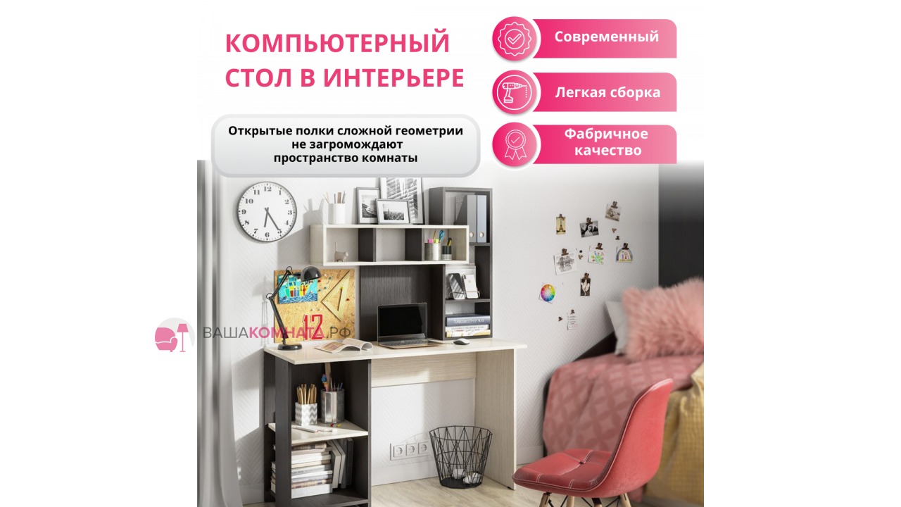 Моя история долгая, но интересная. Письменный или Компьютерный стол искала чуть больше трёх месяцев. Конечно же хотелось не слишком дорого, но многофункциональный. Если изначально просмотр мебели был вялым и недостаточно интересным, но когда устроилась на работу, а работа в дальнейшем предстояла из дома, то пришлось усилить поиски. За неделю до покупки перелапатила несколько инт-маг. Были достойные столы, но на них цены касались, были столы приемлемые по цене, функционала не было совсем. Но в один из дней я решила снова посмотреть, какие инт-маг. есть в нашем городе, и я наткнулась на данный сайт. Моим решением было прошерстить и этот сайт. Вы не представляете, когда я наткнулась на данный стол я просто зависла на нем. Я влюбилась в этот стол. А ещё порадовала на него скидка. В итоге стол уже сегодня стоит у меня в спальне, и завтра мой рабочий день за новым прекрасным столом.