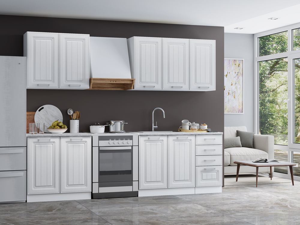Кухонный гарнитур "Греция" 2,0м без стекла - Белый (корпус) / Белый матовый (фасад)