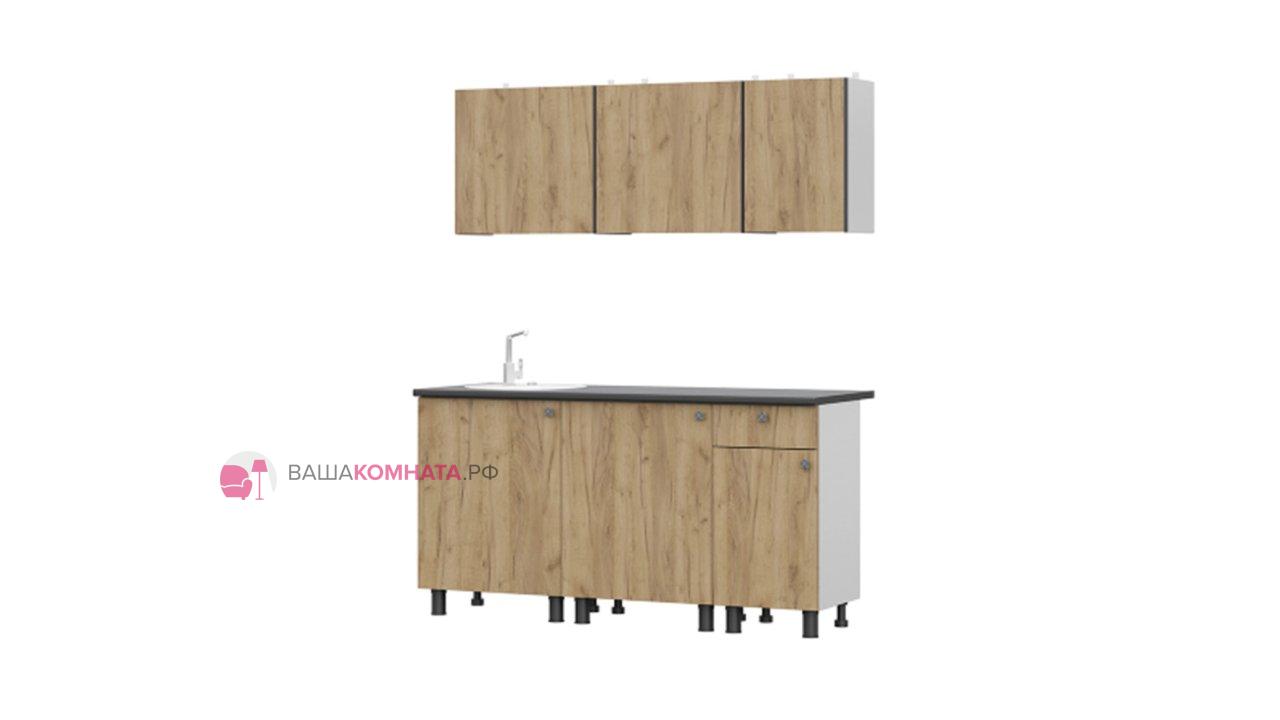 Кухонный гарнитур "София" 1,6м (КГ-1) - Белый/Дуб Золотой/Чёрный