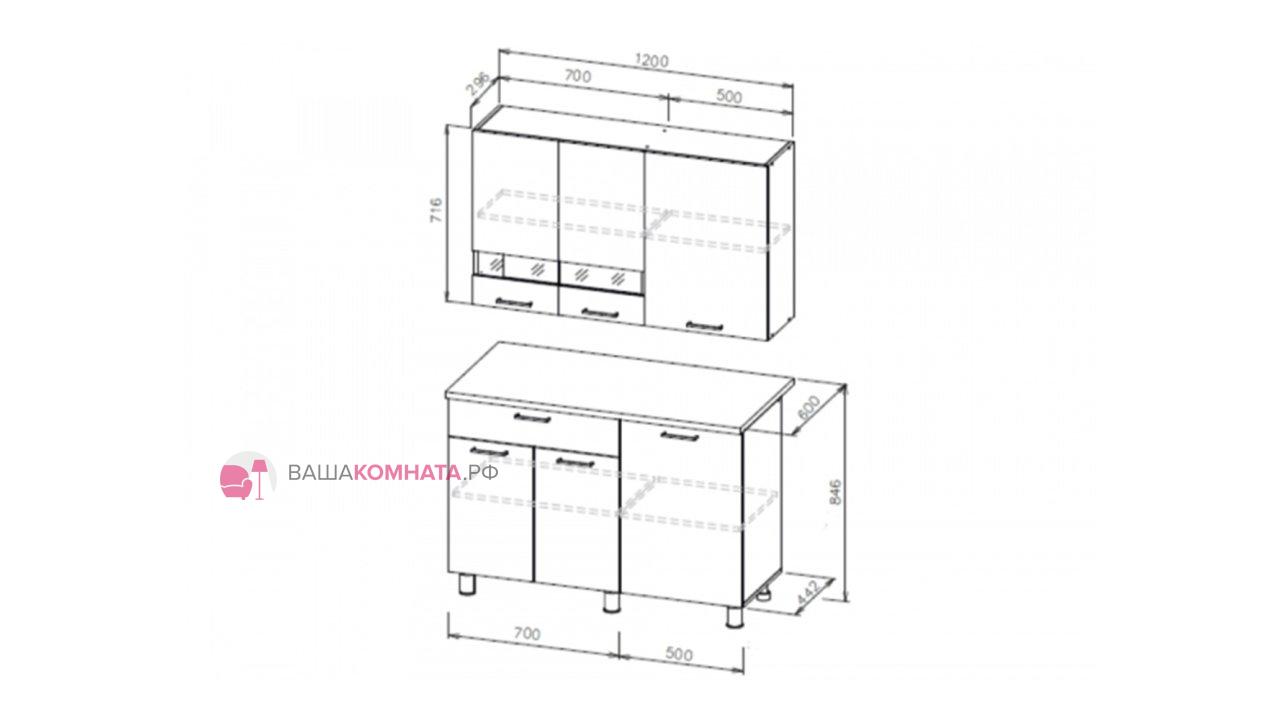 Низ: 1200х846х442 мм (600 мм по столешнице)