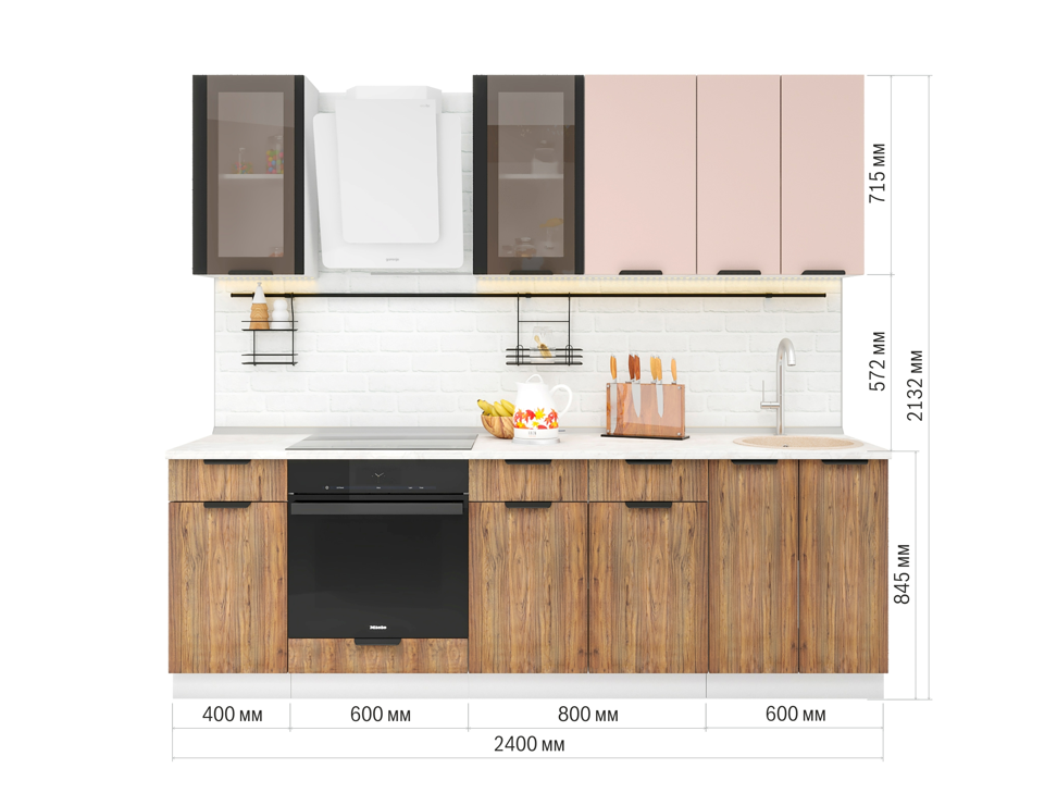 Модульная кухня "Норд" 2,4 м - софт латте/орех канадский
