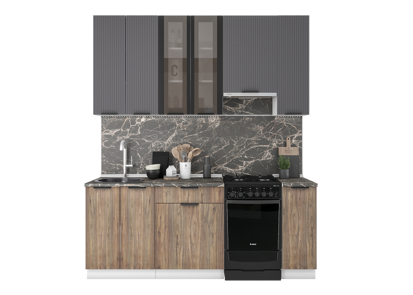 Модульная кухня "Норд Line" 2,0 м Н - софт маренго/орех канадский