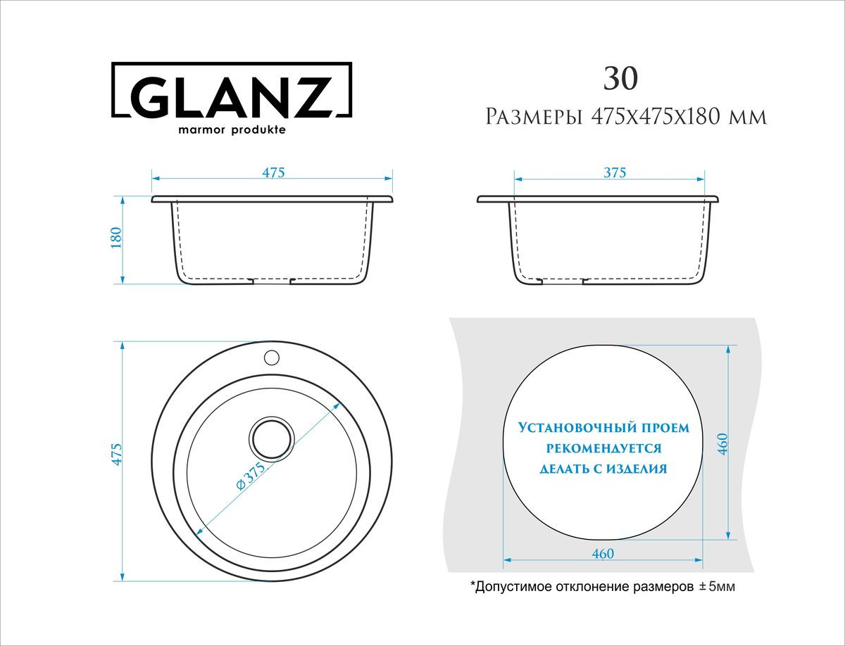 Мойка врезная GLANZ J30 (d 475 мм) - Бежевый