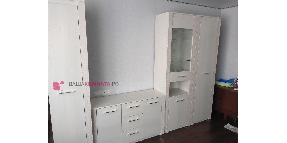 Гамма 20 - качественная фабричная мебель, создана из экологически чистых материалов, оснащенная долговечной фурнитурой и предназначенная для современной гостиной и спальни. Благородство фасадов и корпусов, выполненных в светлой древесной тонировке, подчеркнуто вертикальными фасадными накладками, выполненными в тон фасада и декорированными волнистой фрезеровкой.