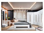 - Глянец пленки ПВХ придает спальному гарнитуру нотки изящества и роскоши.