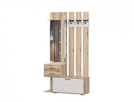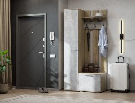 Выполненная в скандинавском стиле прихожая «Бостон» состоит из навесной антресоли, вместительной напольной тумбы, шкафа-пенала с зеркалом, а также из стильной стенки-вешалки, выполненной из профилей. Гарнитур «Бостон» - находка для небольших прихожих.