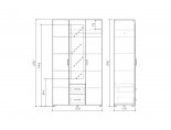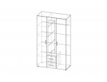 Шкаф разделен на две зоны для хранения. Слева располагаются четыре полки для хранения белья. Справа размещена металлическая штанга для хранения верхней одежды. Над штангой расположена полка. Центральная створка без ручки, открывается после открытия основной правой створки. В самом центре шкафа под створкой с зеркалом имеются два выдвижных ящика на роликовых направляющих глубиной 400 мм. Высота боковины ящика 138 мм. Максимально допустимая равномерно распределенная нагрузка на ящики до 8 кг.