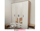 Под центральными створками расположены два выдвижных ящика на роликовых направляющих. Это удобное решение для хранения мелких предметов одежды, аксессуаров или белья. Роликовые направляющие обеспечивают плавное открывание и закрывание ящиков, делая их использование максимально комфортным.