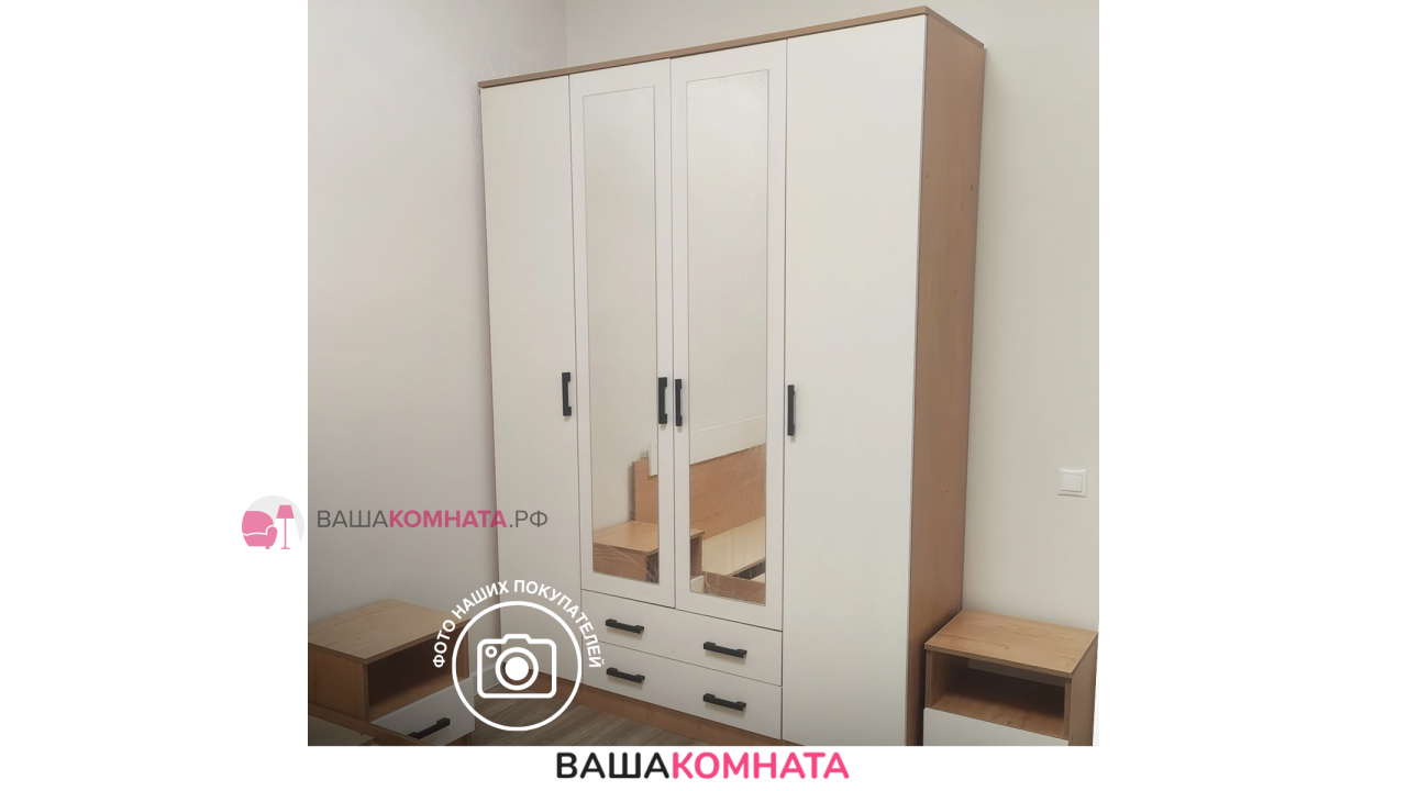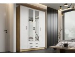 Шкаф 4х-створчатый "Квадро" с зеркалом - Дуб Вотан / Белый гладкий