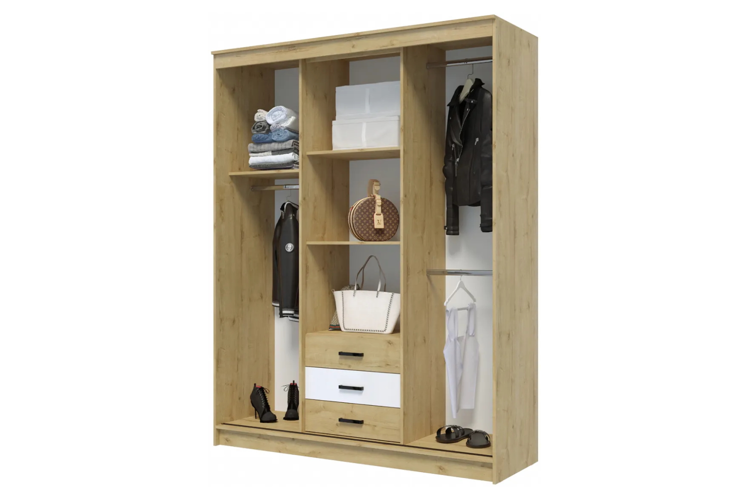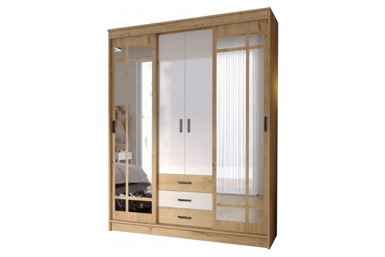 Шкаф-купе "Лорд" (Фортуна) 1,7 м - Дуб Вотан-Белый глянец