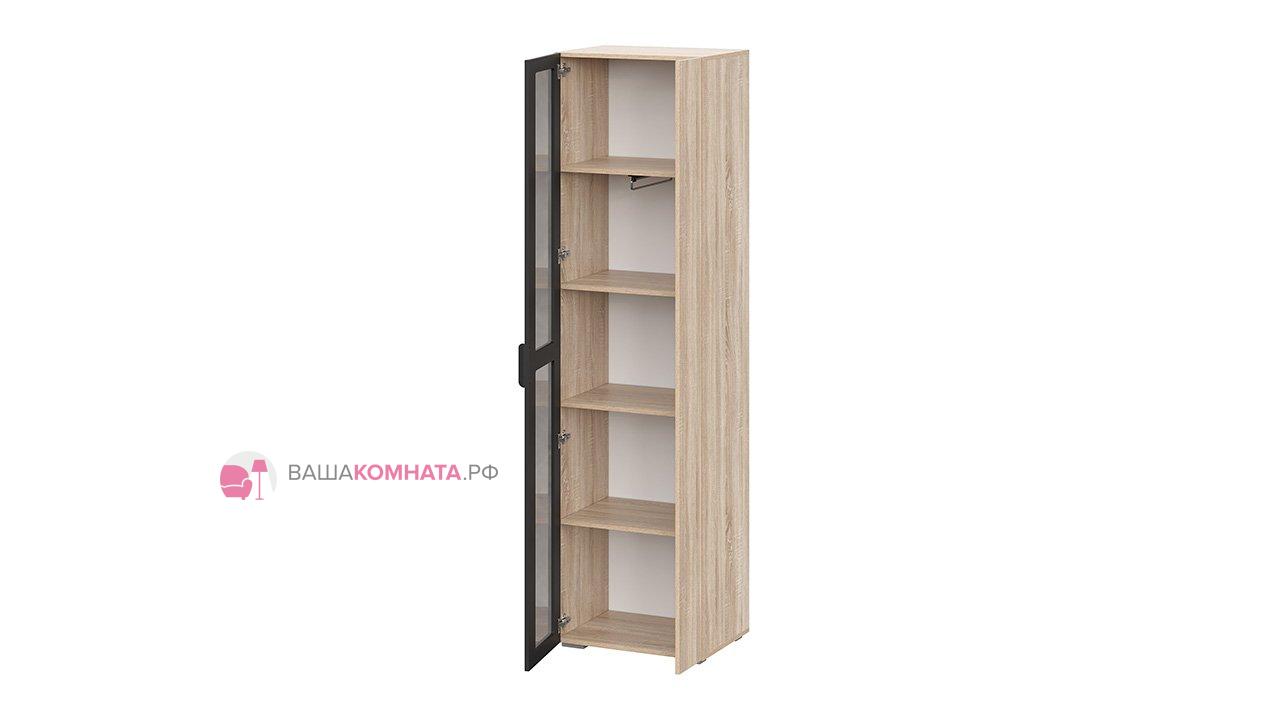 Шкаф Норд ШК02-600 со стеклом - дуб сонома / софт черный