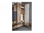 Верху большая стационарная полка. Левая секция комплектуется 4 полками, правая - штангой для одежды и полкой.