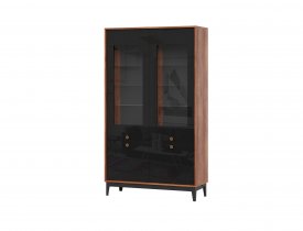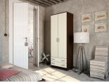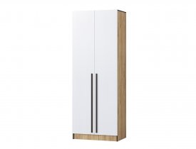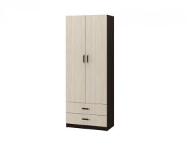 Это двустворчатая модель с распашными дверцами и двумя выдвижными ящиками внизу. Шкаф выполнен в современном стиле и имеет габаритные размеры. Доступная цена делает модель еще привлекательнее.