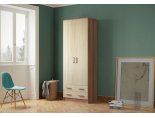 Это двустворчатая модель с распашными дверцами и двумя выдвижными ящиками внизу. Шкаф выполнен в современном стиле и имеет габаритные размеры. Доступная цена делает модель еще привлекательнее.