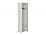 Высота от крышки шкафа до верха полки 340 мм. Высота под хранение одежды от штанги до верха крышки 1600 мм. В комплекте фурнитуры имеется навес с декоративной накладкой, с помощью которого шкаф необходимо крепить к стене для предотвращения его падения из-за компактной глубины. Опоры – американка черного цвета с регулировкой до 10 мм по высоте.