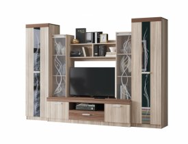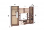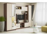 - Гостиная состоит из трёх модулей (шкаф платяной, шкаф бельевой, средняя секция), которые при желании можно устанавливать отдельно друг от друга, размещая в разных комнатах