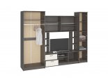 Мебельная композиция стенки включает в себя шкаф с хромированной штангой для плечиков, открытыми и закрытыми полками, а также двумя выдвижными ящиками. Это обеспечивает достаточно места для хранения вашей одежды и других вещей.