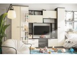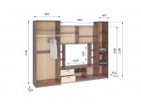 - Гостиная состоит из трёх модулей (шкаф платяной, шкаф бельевой, средняя секция), которые при желании можно устанавливать отдельно друг от друга, размещая в разных комнатах