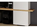 - Усиленная врезная столешница толщиной 32 мм частично уходит в шкаф, за счет этого она выполняет - сразу две роли: подставка под ТВ и полка шкафа