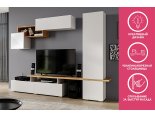 Стенка в гостиную "SkyFree" НМ-001 - Белый (Гладкий)/Дуб Крафт золотой/Белый глянец