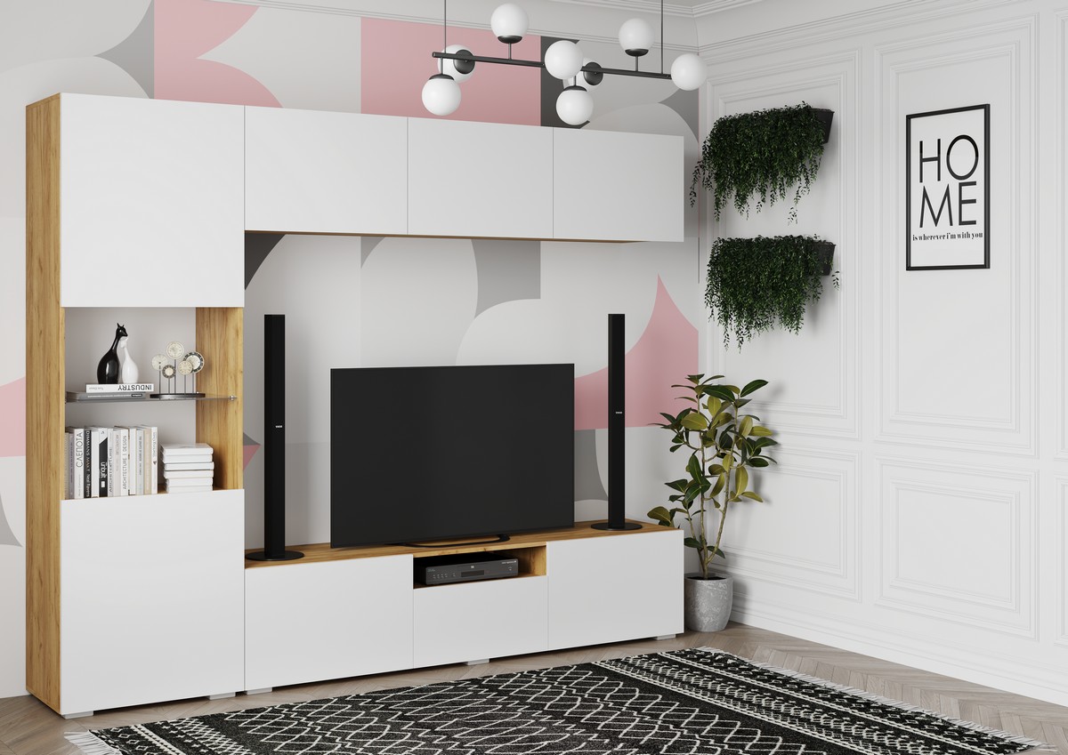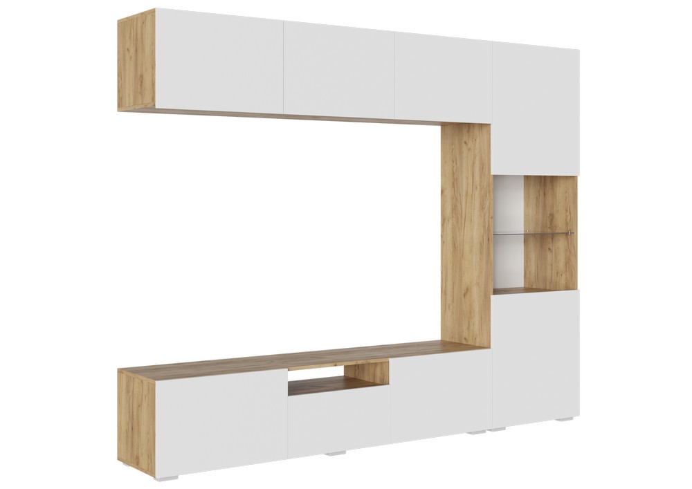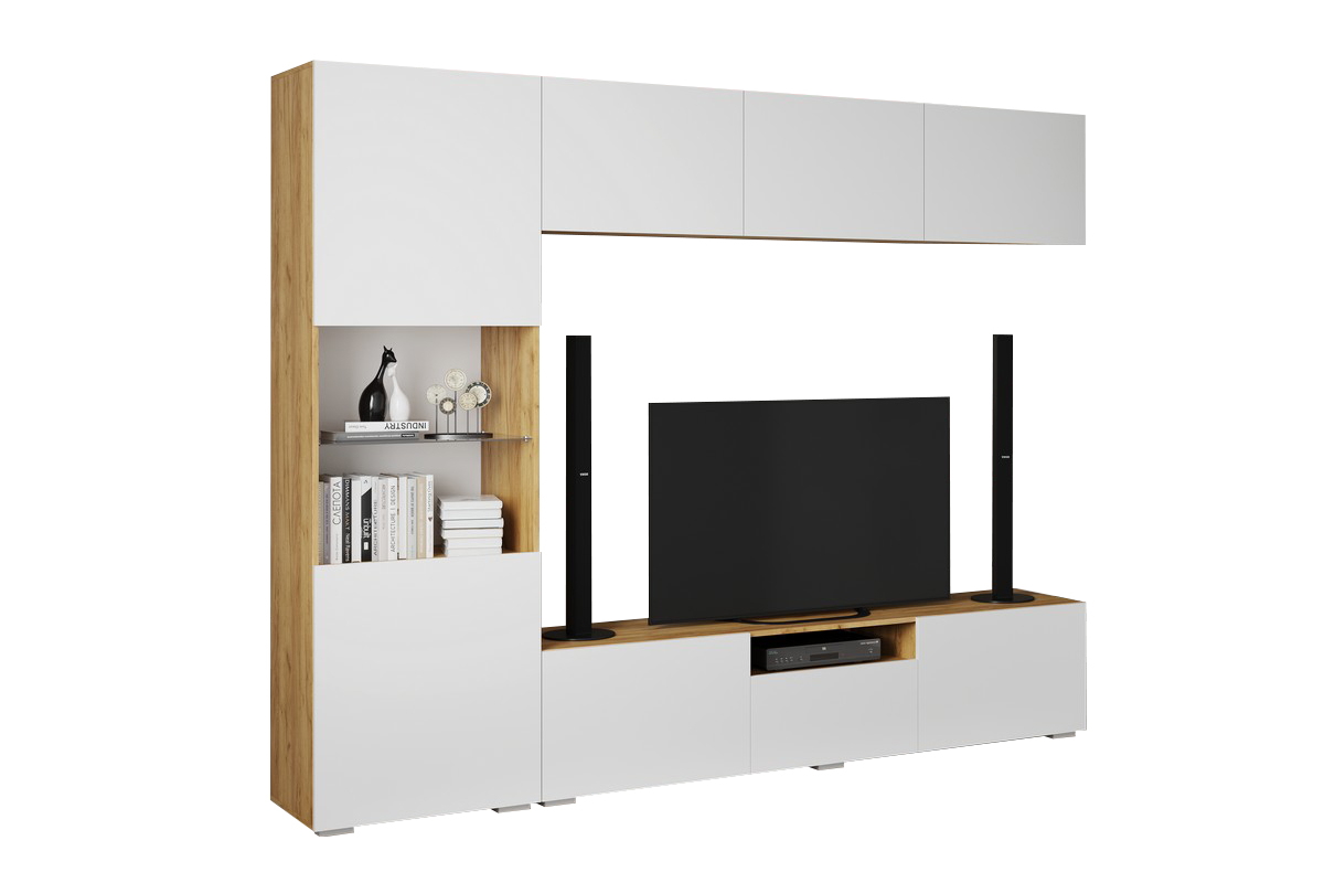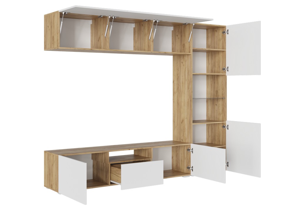 Стенка "СТЕНФОРД" - Дуб Крафт золотой / Белый Софт матовый