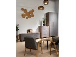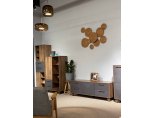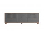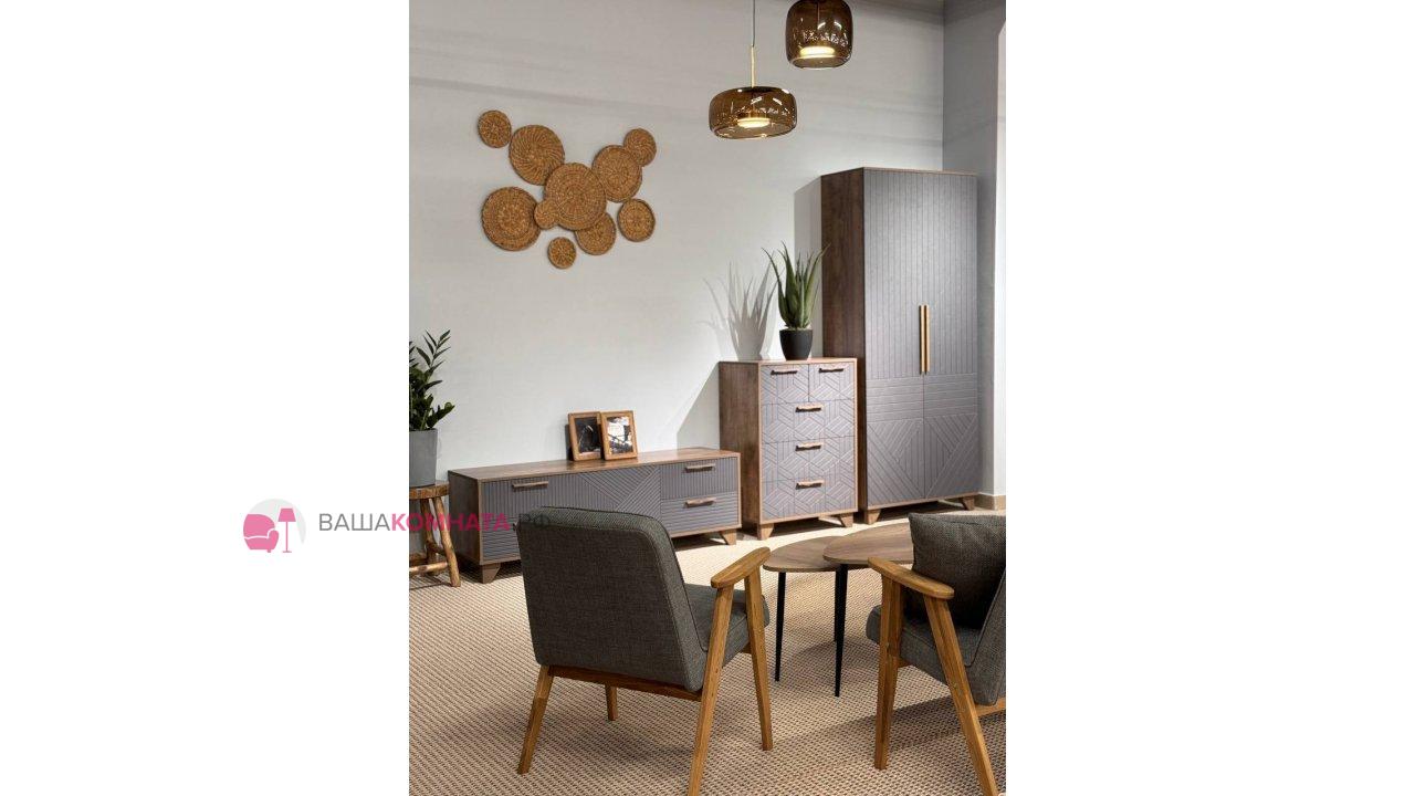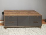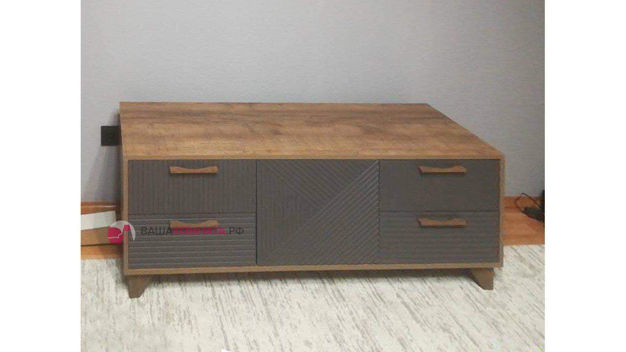 Тумба под ТВ предназначена для размещения телевизора, медиа-техники, личных вещей, предметов декора, поэтому имеет важное значение для гостиной. Данная модель оснащена боковыми выдвижными ящиками на шариковых направляющих полного выдвижения. Между ящиками располагается ниша с двумя полками, закрытая створкой. Для плавности хода створка закреплена на петли с доводчиками. В конструкции тумбы предусмотрен механизм открывания ящиков и створки «push-to-open». Фасад выдвижных ящиков оснащен ручками из массива дуба. Ножки изделия изготовлены из массива дерева и имеют регулировку по высоте. Возможно комбинирование расцветок корпуса и фасада.
