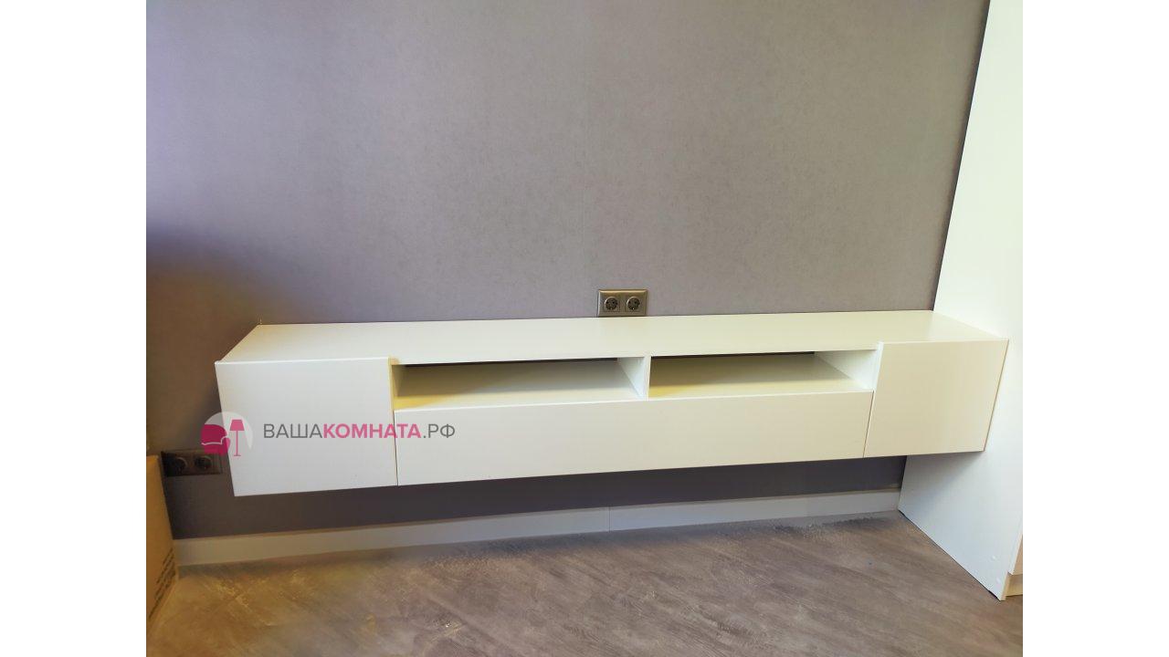 Тумба под ТВ подвесная "Соло-16" - Белый (Гладкий) / Белый глянец